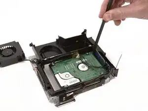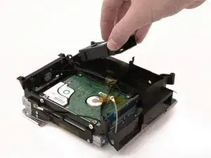 Используйте ту же отвертку и устойчивую силу, чтобы удалить два винта, крепящих левую сторону жесткого диска к пластиковой раме.