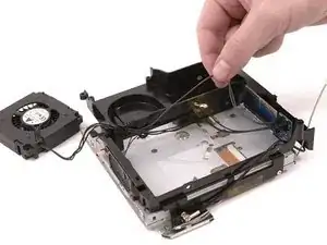 Снимите желтую ленту, удерживающую кабели динамика и вентилятора на дне жесткого диска.