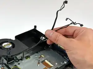 Сначала удалите антенну AirPort (бóльшую из двух), расположенную рядом с кнопкой питания.