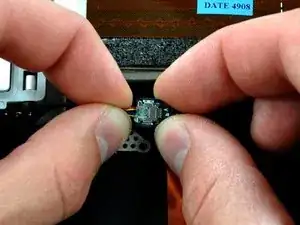 Снимите следующие два винта, которые крепят блок динамика к верхней крышке.