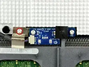 Снимите один винт Torx T10 длиной 17 мм, фиксирующий правый динамик к плате логики.