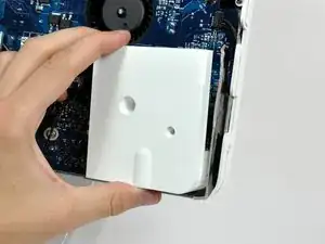 Вставьте пластиковую карточку в угол вентиляционного отверстия вблизи верхней части задней крышки.