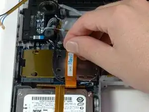 Отсоедините плоские кабели тачпада и клавиатуры от материнской платы, при необходимости удалив фиксирующую ленту.