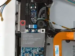 Отсоедините кабель динамика от угла левой платы ввода-вывода.