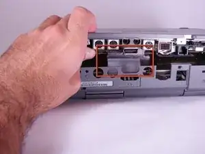 Как только один из штифтов освободится, снимите крышку разъёмов ввода/вывода с компьютера.