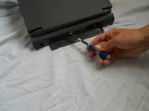 Переверните компьютер, чтобы получить доступ к периферийной панели сзади.