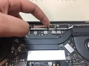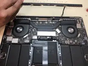 далее снимите антенный брусок. в отличие от предыдущего поколения MacBook Pro, Wi‑Fi‑антенна не крепится к узлу дисплея.
