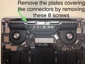 далее снимите защитные пластины, выкрутив 8 винтов T3, отмеченных зелёным кружком.