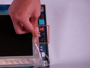 Найдите оранжевый шлейф на задней стороне дисплея.