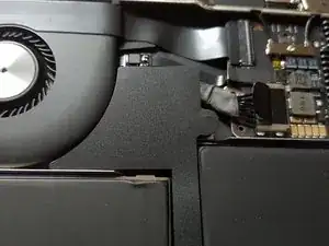 Используйте лопаточку, чтобы сдвинуть разъём аккумулятора параллельно плате логики и вынуть его из гнезда на плате.