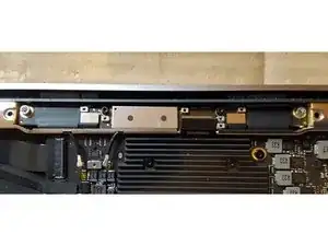 Используйте торкс‑отвёртку T9, чтобы выкрутить шесть винтов 4.7 мм, фиксирующих петли дисплея к верхней части корпуса.