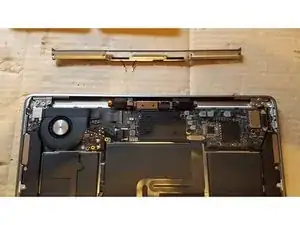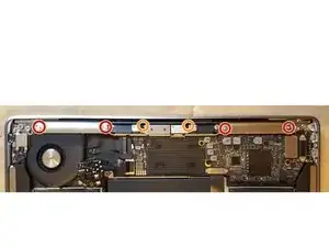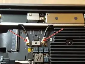 Используйте торкс‑отвёртку T3, чтобы выкрутить один винт 1.1 мм, фиксирующий планку с кабелем антенны.