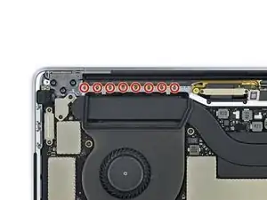 Удаляйте верхний винт последним, удерживая обе половины MacBook Pro одной рукой, чтобы они не разошлись и не упали неожиданно.