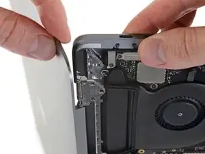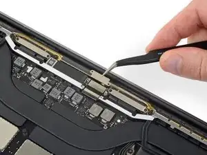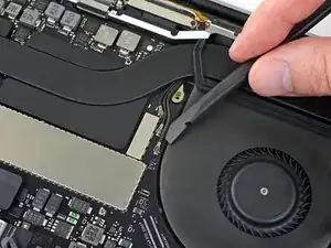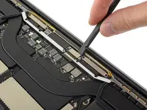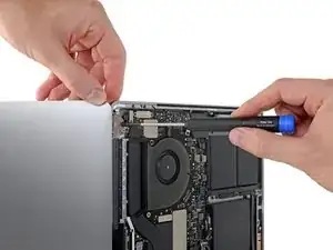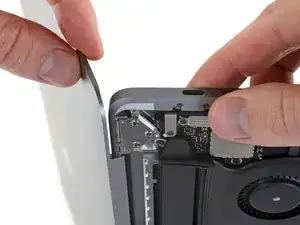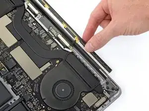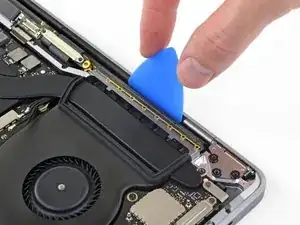 Используйте открывающую лопатку, чтобы поддеть антенною сборку и отделить её от MacBook Pro.