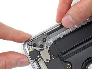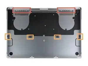 Сожмите обе половины MacBook Pro вместе, чтобы петли можно было поднять и вывести из выемок в корпусе.