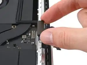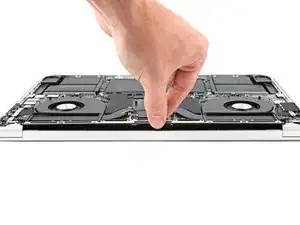 Нажмите обе половины MacBook Pro друг к другу так, чтобы петли можно было поднять из их посадочных мест в корпусе.