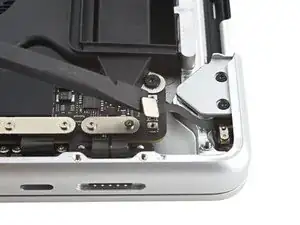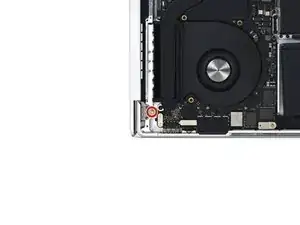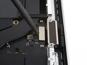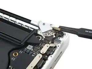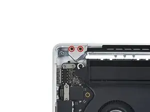Используйте отвертку Torx Plus 3IP, чтобы выкрутить два винта 2.1 мм, крепящие крышку датчика угла крышки рядом с правой петлёй.