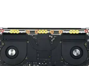 Удаляйте верхний винт последним, удерживая обе половины MacBook Pro одной рукой, чтобы они не разъехались и не упали неожиданно.