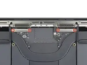 Используйте отвертку Torx Plus 5IP, чтобы выкрутить четыре винта 2.5 мм, крепящие крышки петель (по два винта с каждой стороны).