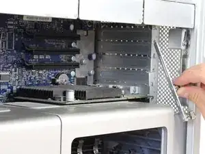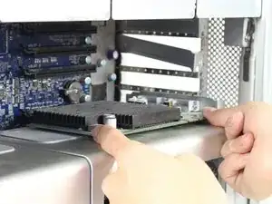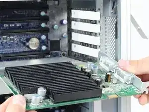 Найдите видеокарту в открытой боковой панели вашего Mac Pro.