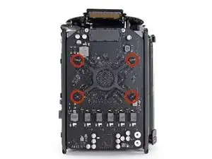 Снимите пять винтов Torx T10 длиной 5,1 мм, расположенных по внешнему периметру узла вентилятора.
