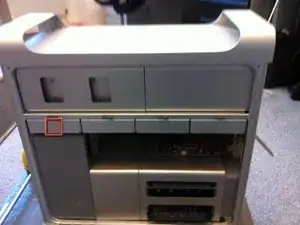 Каждый отсек имеет номер, нанесённый на него, и номера идут с левого на правый. Отсек #1 должен содержать стандартный жёсткий диск, установленный Apple. Аккуратно снимите кронштейн из следующего пустого отсека для жёсткого диска — если вы приобрели только один жёсткий диск с вашим компьютером, он должен легко вытаскиваться.