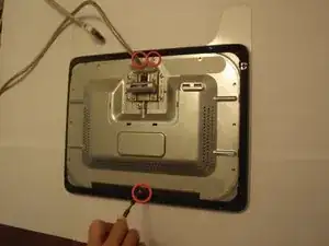 Удалите единственный винт сверху и два винта внизу монитора с помощью отвертки с крестообразным закручиванием размером #2.