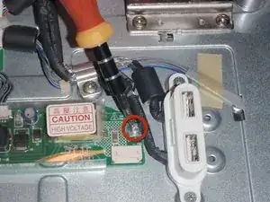 Удалите нижний винт с крестообразным закручиванием и вытяните плату инвертора CCFL из монитора.
