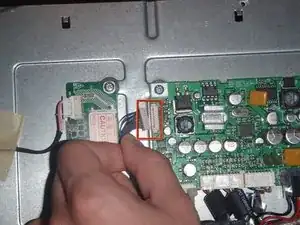 Удалите два кабеля с левой стороны платы, вставив шпильку в два маленьких отверстия и затем вытащив.