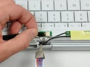 Отключите кабель данных дисплея, потянув кабель от разъёма на ЖК.