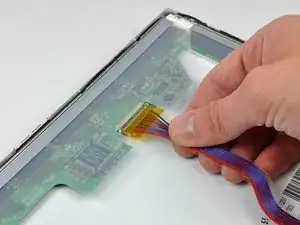 Отсоедините кабель данных дисплея, потянув кабель от разъёма на ЖК.