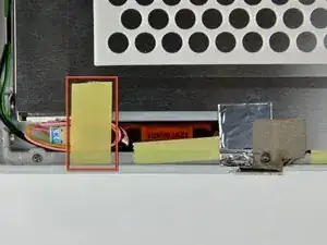 Снимите большой кусок ленты рядом с правым шарниром дисплея.