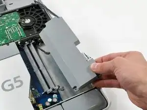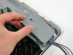 Сдвиньте инвертор в сторону к кромке средней панели, затем поднимите его и извлеките из iMac.