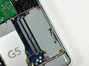 Ослабьте три винта с крестообразным шлицем, крепящие заднюю панель к iMac.