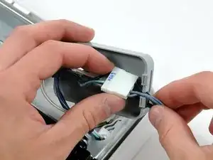 Отсоедините мелкий разъём кабеля инвертора, потянув его прямо от гнезда.