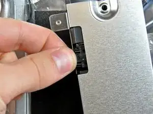 Оттяните разъём датчика температуры ЖК-панели прямо вверх от его гнезда на логической плате.