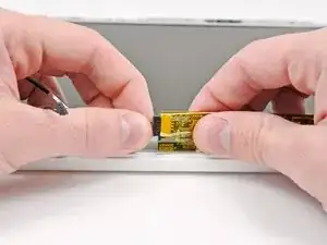 Используйте лопатку, чтобы осторожно отключить кабель микрофона от платы логики. Работайте из стороны в сторону и медленно покачивайте разъём, чтобы извлечь его из гнезда.