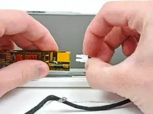Отключите только что обнажившийся кабель передачи данных дисплея. Если на верхней части разъёма нет язычка, может понадобиться лопатка, чтобы отсоединить разъём.