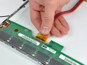Отключите кабель данных дисплея, потянув его разъем от сокета на ЖК-дисплее.