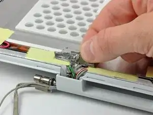 Удалите два куска скотча с кабелей данных дисплея/микрофона вблизи нижнего края дисплея.