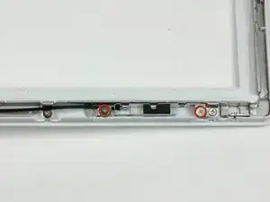 Удалите два винта с крестообразной головкой, крепящих каждую сторону ЖК-дисплея к каркасу петель сцепления (всего четыре винта).