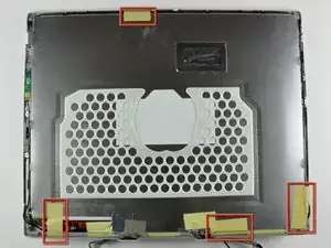 Отопните кусок скотча, удерживающий заземляющий контур кабеля данных дисплея на тонком стальном покрытии ЖК-дисплея.