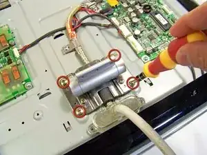 Отверните четыре винта, которыми кабель ADC прикреплён к дисплею.