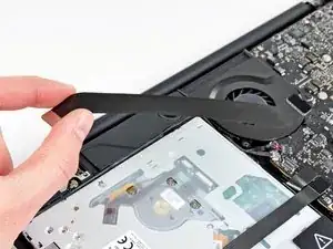 Отклейте кусок экранирующей плёнки, закрывающий разъём кабеля AirPort/Bluetooth над оптическим приводом.