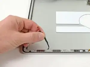 Снимите кабель AirPort/iSight с корпуса дисплея.