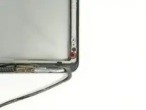 Снимите винт Phillips 2,2 мм, расположенный возле нижнего правого угла, который крепит кабель AirPort/iSight к корпусу дисплея.