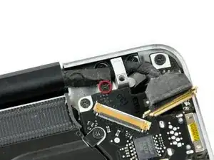 Снимите винт Phillips 7 мм, удерживающий кронштейн кабеля LVDS.