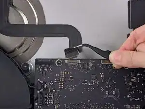 Потяните кабель камеры iSight прямо от его разъёма на логической плате.