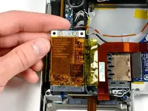 Снимите два винта Phillips 2.8 мм в отсеке батареи рядом с защёлкой.