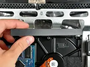 После освобождения левого края поверните кронштейн к правому краю жёсткого диска.